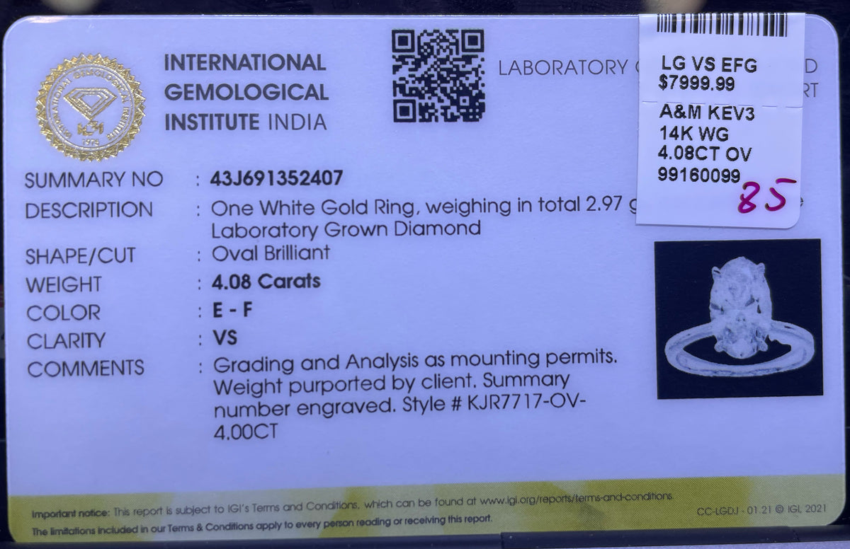 Certified Lab Grown Diamond Report